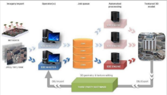 ContextCapture Master是Smart3D的主要模块。通过图形用户接口,向软件定义输入数据,设置处理过程,提交过程任务,监控这些任务的处理过程与处理结果可视化等。这里注意到,Master并不会执行处理过程,而是将任务分解为基础作业并提交给Job Queue。