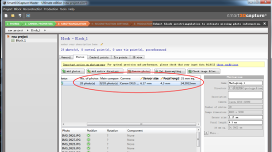 这些照片的额外辅助数据需要:传感器属性(焦距、传感器尺寸、主点、镜头失真),照片的未知参数(如GPS),照片姿态参数(如INS),控制点等等。