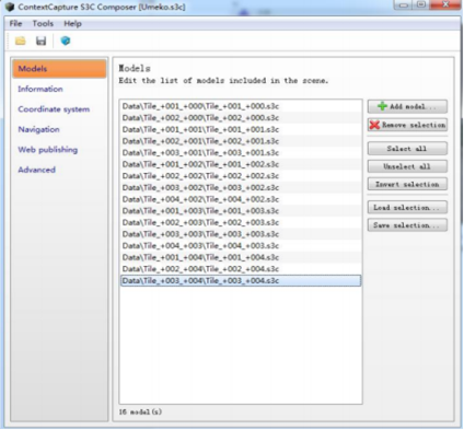 Acute3D Viewer支持软件的原生s3c格式来查看浏览模型,它也整合了三维测量工具和瓦片选择工具,测量方面包括三维空间位置、三维距离和高差等信息。这里的瓦片选择工具对于后期模型的核心区域提取和重建都是十分有实用价值的。